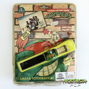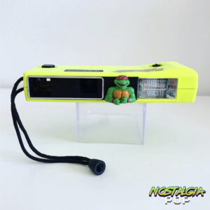 En los 1991 los coletazos de la Tortugamanía aún duraban, se empezaba a notar el desgaste y el principio de la decadencia pero aún se seguía dándo al Cowabunga. No hay moda que se salve, y sino que se lo digan al Fidget Spinner. Cuando se sobrexplota una marca, los productos de merchandising se hacen más cuestionables y de calidad más dudosa. La compañía americana Remco Toys, famosa por sus robots clásicos o las figuras de acción de Karate Kid, en uno de los últimos intentos de salvar la empresa (ya en horas bajas) adquirió la licencia de las Tortugas Ninja para crear algo nunca visto, una cámara de fotos en la que fotografiarte con Michelangelo.