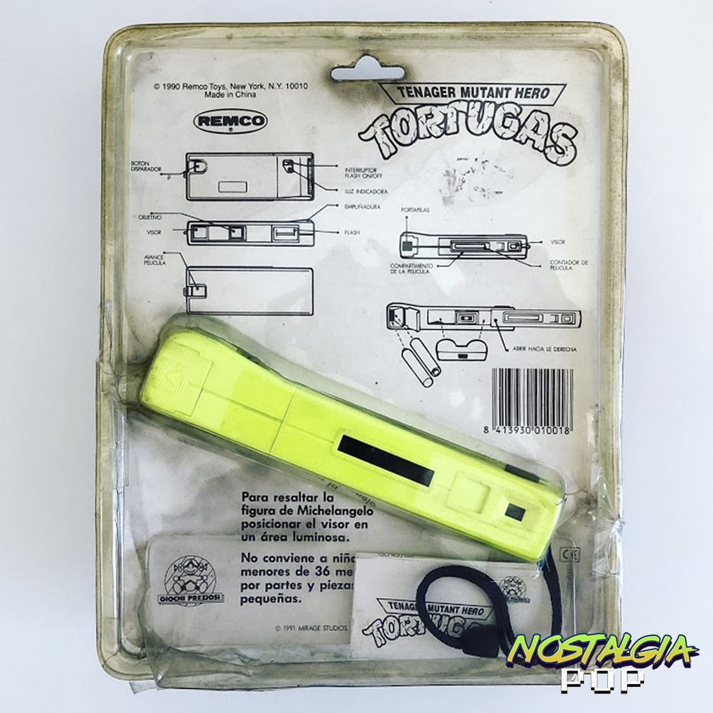 En los 1991 los coletazos de la Tortugamanía aún duraban, se empezaba a notar el desgaste y el principio de la decadencia pero aún se seguía dándo al Cowabunga. No hay moda que se salve, y sino que se lo digan al Fidget Spinner. Cuando se sobrexplota una marca, los productos de merchandising se hacen más cuestionables y de calidad más dudosa. La compañía americana Remco Toys, famosa por sus robots clásicos o las figuras de acción de Karate Kid, en uno de los últimos intentos de salvar la empresa (ya en horas bajas) adquirió la licencia de las Tortugas Ninja para crear algo nunca visto, una cámara de fotos en la que fotografiarte con Michelangelo.