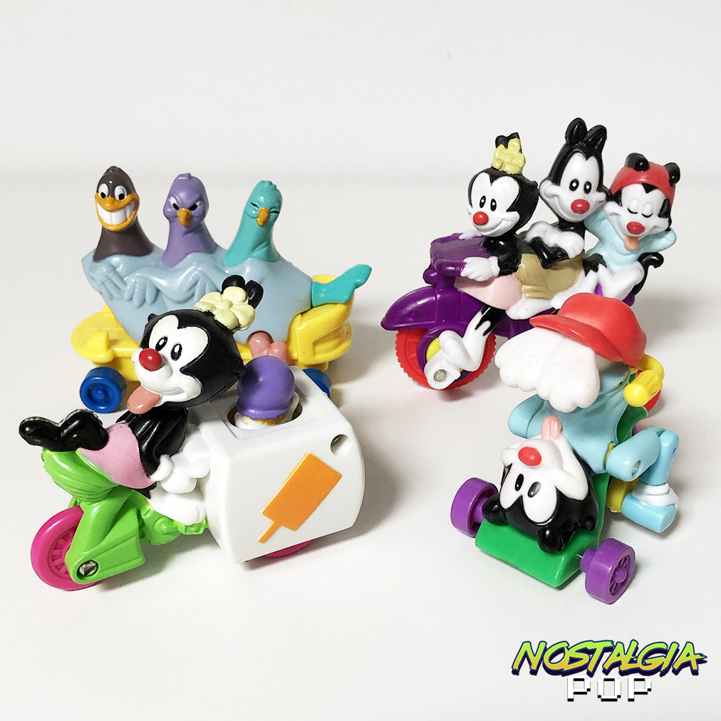 Los hermano Warner también fueron regalos de Happy Meal. ¡Y hasta en dos ocasiones! La poco reivindicada serie de Steven Spielberg tuvo esta colección en Europa que consta de cuatro cochecitos: Wakko, que pedalea al moverse; Dot, que hace subir y bajar el helado al pedalear; los tres hermanos y los palomos, que simplemente pedalean. Desconozco porque de entre todos los personajes, se descartó a Pinky y Cerebro, cuando existe en la versión americana. Esta colección es extremadamente fácil de conseguir, algo que no se puede decir de la americana, conformada por ocho piezas. Si la incluyo entre mis favoritas es por que adoro los Animaniacs.
