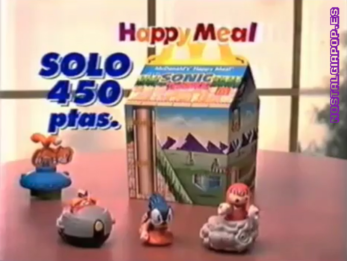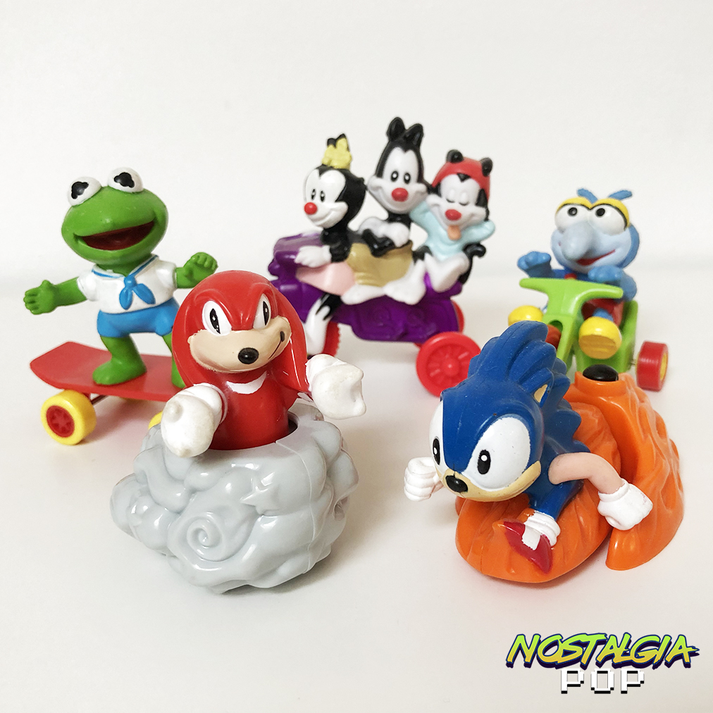 En plena Sonicmanía McDonald’s ayudó un poco más a la popularidad de Sega con esta campaña. Basada en la serie de animación americana producida por DIC y emitida en nuestras tierras por Antena 3, esta línea de juguetes consta de: Sonic, el cuál al apretar un botón sale disparado como un coche de Hot Wheels; Tails, que al tirar de la cuerda gira como una peonza; Knuckles, que al hacerlo rodar gira sobre sí mismo; y el Dr. Robotnik que se camina al darle cuerda. Muy celebrada entre los fans y asequible de conseguir gracias a su popularidad en la época.
